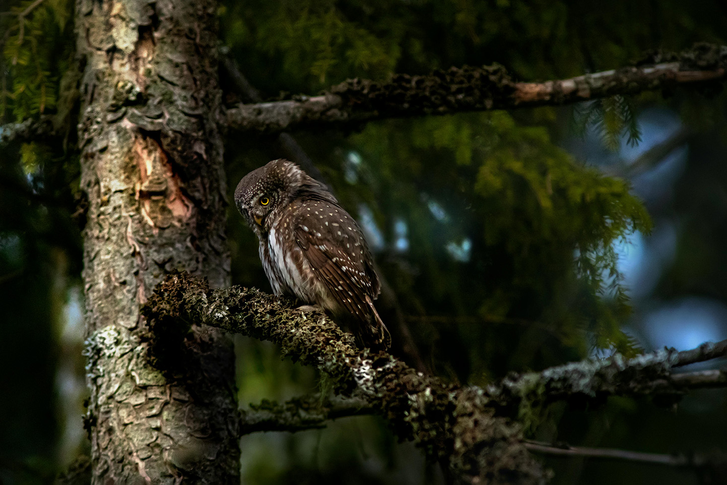 The Boreal Owl is a small-sized owl species, with a body length of 22-27 cm and a wingspan of 50-62 cm. The dorsal side of the body is dark chocolate brown, marked with prominent spots and speckles. The ventral side (chest and abdomen) is dirty white, richly streaked with tawny or dark brown bars. The head is large with prominent yellow eyes, and the tail is short, adorned with sparse white bars. The Boreal Owl is strictly protected as a natural rarity under the Regulation on the Protection of Natural Rarities, which prohibits any disturbance, harassment, and killing of birds, as well as the destruction of their habitats. The most significant population of this species in Serbia is found on Kopaonik, where it is characteristic of high-altitude spruce forests.